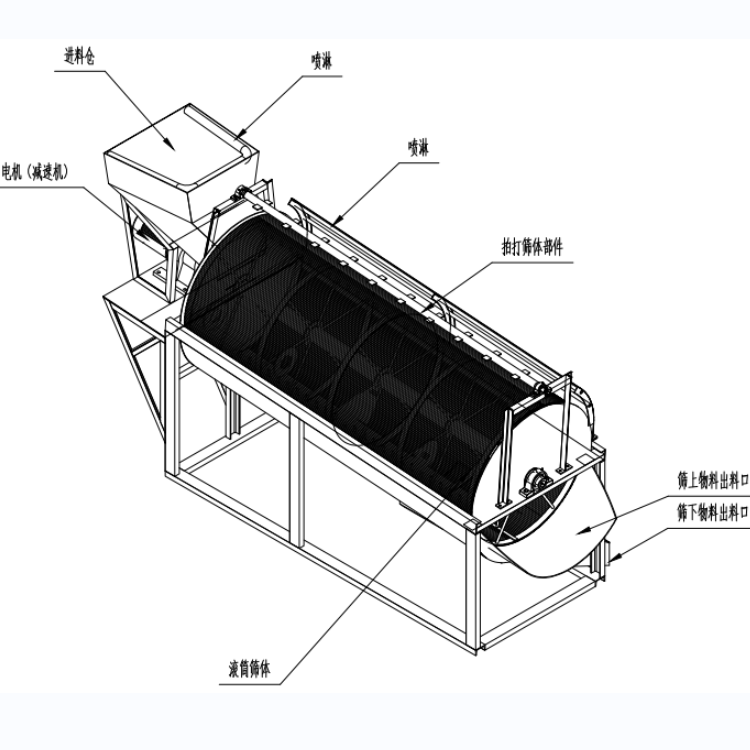 圓筒篩 克服了圓振動篩和直線篩在篩分較濕物料時出現(xiàn)的篩網(wǎng)堵塞問題,提高了篩分系統(tǒng)的產(chǎn)量和可靠性,受到廣大用戶的一致好評。